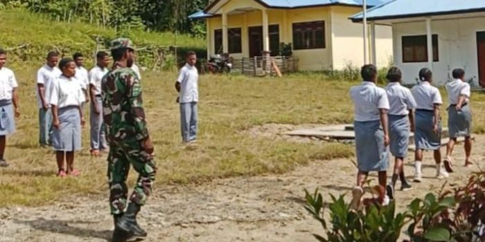 Neney, Rabu 26 Februari 2025 – Dedikasi tak kenal lelah terus ditunjukkan oleh Babinsa Serda Kambu dari Koramil 1808-06/Neney dalam memberikan wawasan kebangsaan (wasbang) dan pelatihan peraturan baris-berbaris (PBB) di wilayah binaannya. Kali ini, SMA Negeri Neney di Kampung Neney, Distrik Mansel, menjadi sasaran utama kegiatan positif ini.