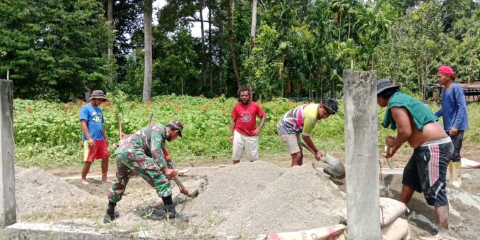 Guna terciptanya sinergitas TNI bersama Rakyat, Babinsa Koramil 1801-06/Sidey Sertu Bahrun melaksanakan karya bakti dalam hal ini membantu pembuatan jalan lingkungan bersama warga Kampung Sidey Jaya Distrik Sidey, Kabupaten Manokwari, Provinsi Papua Barat, Jumat (08/11/2024).