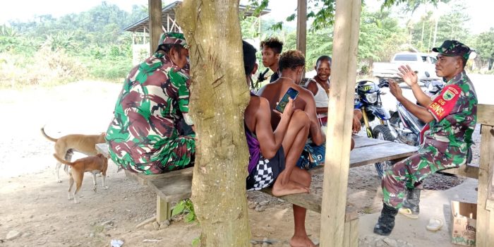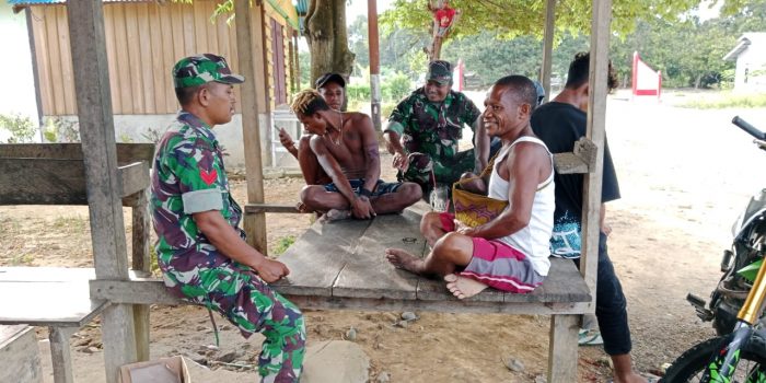 Sebagai salah satu upaya mencegah potensi gangguan kamtibmas agar tidak menjadi gangguan nyata, Babinsa Koramil 1801-06/Sidey Pelda Lilik Prafianto dan Koptu Kristiyono Babinsa Koramil 06/Sidey yang selalu aktif hadir di kampung binaanya dan bersilaturahmi dengan segenap elemen masyarakat agar sekecil apapun permasalahan yang ada cepat diatasi di Kampung Meyof 1 Distrik Sidey, Manokwari, Papua Barat, Sabtu (24/08/2024).