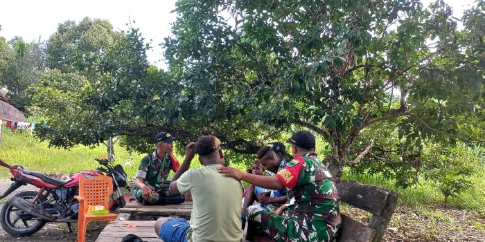 Upaya Untuk Memanunggalkan TNI dengan rakyat terus dijaga setiap prajurit TNI dimanapun berada, Seperti yang dilaksanakan Babinsa Koramil 1801-06/Sidey Serda Ronald Maalete dan koptu Kristiyono dengan melaksanakan kegiatan komsos di wilayah binaanya Kampung Snadi, Distrik Sidey, Kabupaten Manokwari, Provinsi Papua Barat, Rabu (25/09/2024).