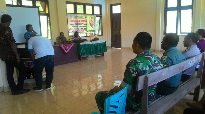 Adapun yang hadir dalam kegiatan Sosialisasi ini yaitu Kepala Distrik Maladomes Ibu Dorce Jitmau, Kepala Puskesmas Tanjung Kasuari Bapak Yanto Jumame, Bhabinkamtibmas beserta masyarakat yang hadir kurang lebih 50 orang.