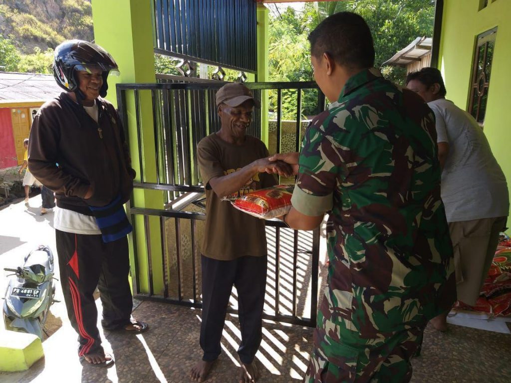 Sorong– Sebagai wujud rasa empati dalam menjalin hubungan silaturahmi terhadap sesama warga khususnya di jalan Danau Maninjau  Kelurahan Pal Putih Kota Sorong, Bapak Nunung Nugroho selaku Tokoh Pemuda didampingi Babinsa Kelurahan Pal Putih Serma Sudirman Koramil 1802-02/Sorong Barat memberikan sumbangan berupa beras, Kamis (23/05/2019).