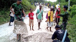 Dalam kegiatan tersebut dihadiri sekitar 45 warga masyarakat bersama para perangkat Kampug Ayamaru dan Babinsa yang bekerja saling bahu membahu dengan penuh semangat melaksanakan Karya Bakti Perbaiki Jalan tersebut.