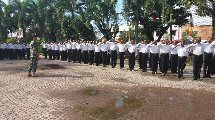 Babinsa Sorong Kota Latih PBB dan Wasbang Ratusan Siswa SUPM Kota Sorong
