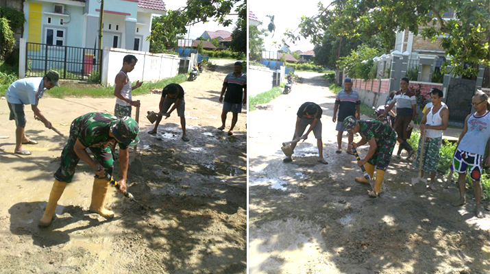 Kegiatan ini dilaksanakan karena kondisi jalan yang berlubang-lubang dan dapat menyebabkan kecelakaan. Apalagi saat ini sering terjadi hujan, sehingga becek dan dapat mempengaruhi kelancaran aktivitas warga, kondisi inilah yang membuat Babinsa Sertu Suwanto mengajak warga masyarakat setempat melaksanakan karya bakti pengurugan tanah untuk jalan yang berlubang dan tergenang air agar dapat dilalui dengan aman oleh warga masyarakat setempat.
