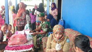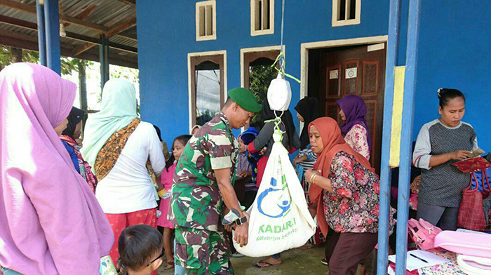 Sorong – Untuk meningkatkan kesehatan dimasyarakat, Babinsa melaksanakan pendampingan kegiatan posyandu diwilayah binaannya, seperti yang dilakukan Serda Sukino yang bertugas sebagai Babinsa Kelurahan Malawili Koramil 1704-01/Sorong Timur, Rabu (18/04/18).