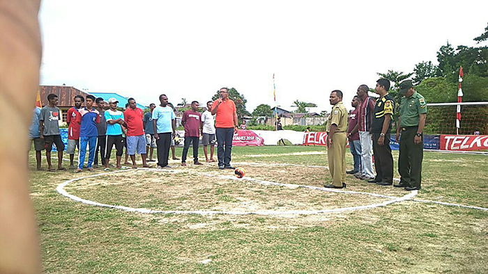 Sorong – Babinsa (Bintara Pembina Desa) merupakan satuan teritorial TNI AD paling bawah, yang berhadapan langsung dengan Masyarakat. Seorang Babinsa memiliki wilayah operasi yang bervariasi dari satu kampung hingga beberapa kampung. Terkait hal tersebut, Babinsa Kelurahan Klagete Koramil 1704-01/Sorong Timur Serda Lanuba bersama Bhabinkamtibmas menghadiri upacara pembukaan turnamen Futsal MB Malpas Cup I yang diselenggarakan di wilayah binaan Kota Sorong, Jumat (24/08/2018).