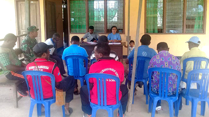 Sorong – Bertempat di Kel Mariat Gunung Distrik Aimas Babinsa Koramil 1704-01/Sorong Timur, Pelda Tugimin, bersama dengan Lurah Pak Melkiyanus Bisi mengikuti acara sosialisasi tentang program bantuan pangan berupa subsidi beras untuk rakyat sejahtera (Rastra) dan Focer Rp 110.000,- (Seratus Sepulu Ribu Rupiah), Rabu (14/03/2018).