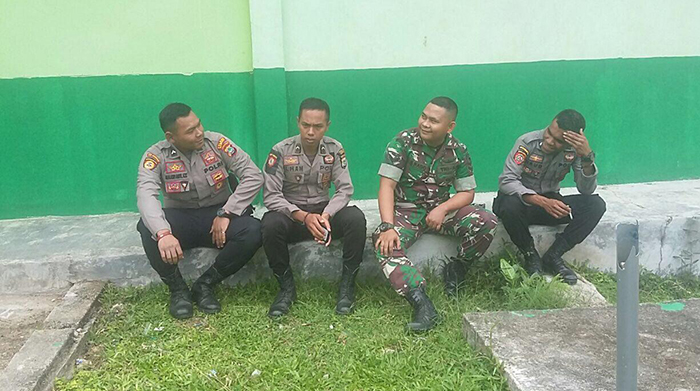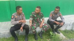 Kaimana – Babinsa Koramil 1713/Teluk Arguni Sertu Ahmad S.Rado melaksanakan Komsos dengan aparat kepolisian sektor Teluk Arguni demi menjalin hubungan yang harmonis antar sesama aparat keamanan di wilayah Distrik Teluk Arguni, Kabupaten Kaimana Rabu (11/07/2018).
