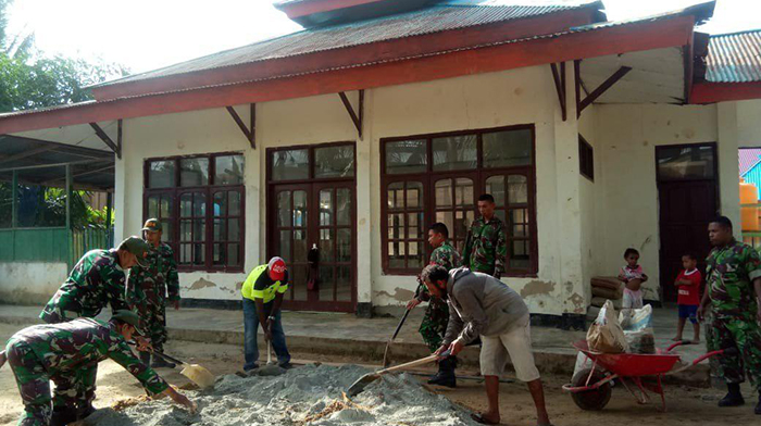 Membantu dan mengatasi kesulitan rakyat sekelilingnya itulah TNI, dalam hal ini Danpos Distrik Sorong Barat Peltu Nuepito bersama 12 anggota Babinsa dan masyarakat Kokoda Kelurahan Klawasi melaksanakan karya bakti gotong royong pengecoran halaman masjid Baitul Makmur. Terlihat, penuh semangat anggota Koramil 1802-02/Sorong Barat dan masyarakat bahu membahu tanpa kenal lelah mengecor halaman Masjid tersebut.