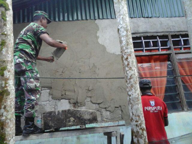Fakfak – Babinsa Koramil 1803-03/Kokas Serda La Ruslan, melaksanakan Karya Bakti merehab Rumah warga, Bertempat di Patipi Pasir, Distrik Teluk Patipi, Kabupaten Fakfak, Senin (11/02/2019).