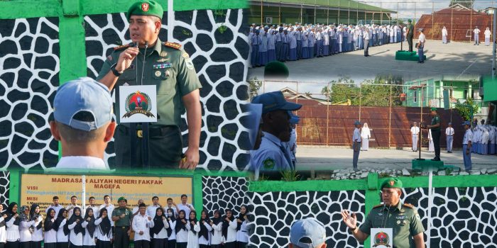 TNI AD- Komandan Korem 182/JO, Kolonel Inf Aswin Kartawijaya memimpin upacara Bendera bertempat di Lapangan Madrasah Aliyah Negeri (MAN) Fakfak, Jalan Yos Sudarso, Wagom, Fakfak, Papua Barat, Senin (17/02/2025).