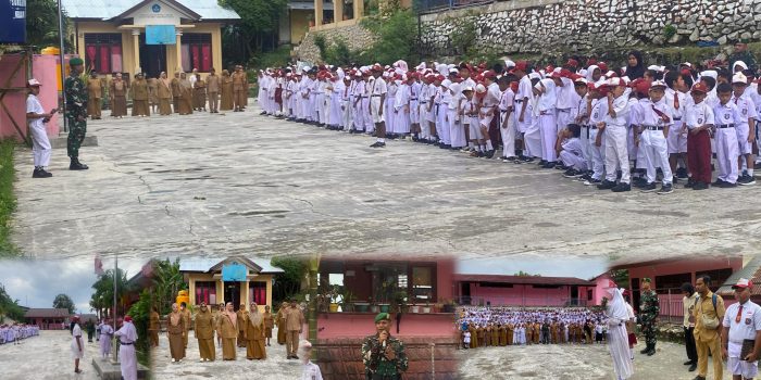 Fakfak- Kasrem 182/JO, Letkol Inf EKo Handono, memimpin upacara Bendera Mingguan Bulan Februari TA. 2025 bertempat di Lapangan Sekolah Dasar Negeri (SDN) 1 Wagom, Fakfak, Papua Barat, Senin (03/02/2025).