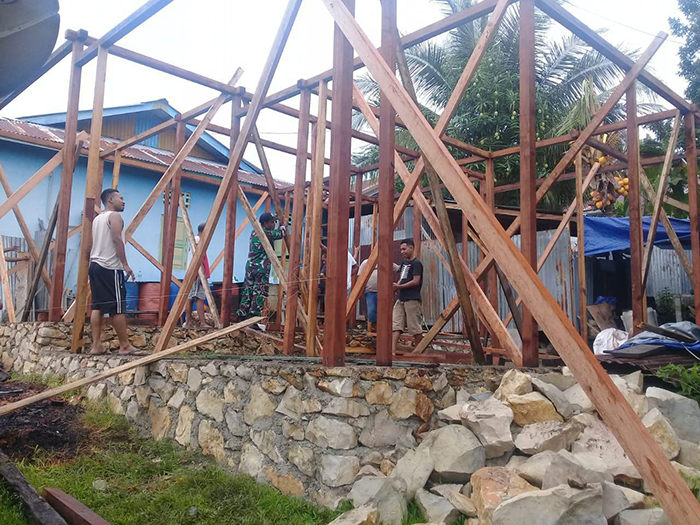 Fakfak – Babinsa Koramil 1803-01/Kota Koptu Rahman, Bersinergi dengan Masyarakat dalam membantu mendirikan Rumah Warga Binaan, guna mengatasi kesulitan rakyat, Bertempat di Wagom, Kelurahan Wagom, Kabupaten Fakfak, Jumat (22/02/2019).