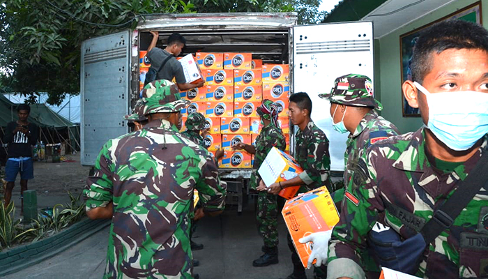 Sejak hari kedua pasca gempa hingga saat ini (17/8/2018), telah disistribusikan bantuan untuk para pengungsi, berupa makanan cepat saji (lebih dari 20.000 paket), lauk pauk (7.000 paket), makanan tambahan gizi (6.500 paket), perlengkapan balita/ kidsware (4.500 paket), family kit (4.500 paket), sandang/pakaian (1.000 paket), selimut (50.000 lembar), dan matras (14.000 lembar), serta tenda gulung (15.000 lembar). Sedangkan dukungan peralatan tenda pengungsi, tenda keluarga Rumah Sakit Lapangan (Rumkitlap), genset berbagai tipe, toren air, WC portable, hingga water treatment portable terus didistribusikan ke para pengungsi.