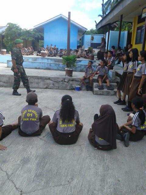 Fakfak – Bertempat di halaman SD Negeri 1 Fakfak Babinsa Koramil 1803-01/Kota Sertu Ramli, memberikan Pelatihan Baris Berbaris (PBB) pada adik-adik Pramuka Saka Wira Kartika sebanyak 64 orang, guna membentuk Sikap dan Kedisiplinan sejak Usia Dini, Jumat (22/02/2019).