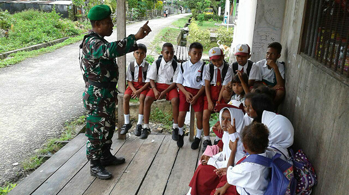 Untuk itu, Bintara Pembina Desa (Babinsa) Koramil 1713-03/Teluk Arguni Sertu Adolop Passal memyampaikan agar kepada Siswa/siswi SD Negeri Tanusan segera pulang kembali kerumah masing masing dan agar tidak dpt pengaruh yang negatif di sekitar lingkungan mereka.