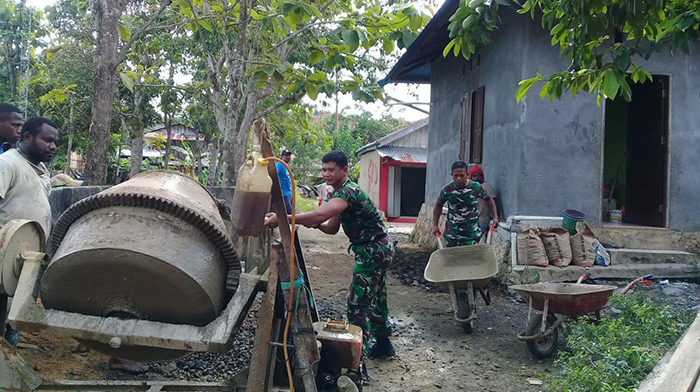 Babinsa Kampung Tanjung Batu Kelurahan Pal Putih Koramil 1802-02/Sorong Barat Serda Ilyas Laamu mengatakan ketertiban anggota TNI di saat kegiatan tersebut yakni untuk ikut meringankan warga dan mempercepat proses pengecoran agar jalan masuk bisa cepat digunakan. ucap Babinsa.