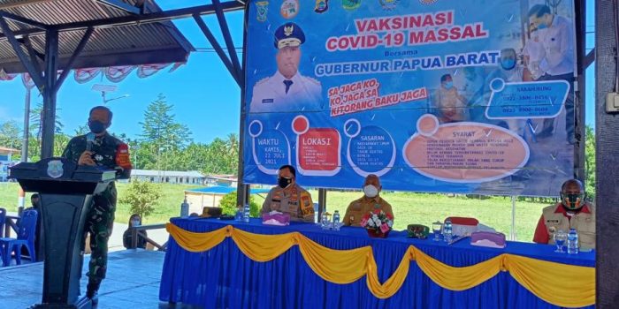 Pangdam XVIII/Kasuari dalam sambutannya saat meninjau vaksinasi massal mengajak kepada seluruh masyarakat agar menjaga diri dan kesehatan karena virus covid-19 terus bermutasi dan muncul jenis baru dan lebih berbahaya.