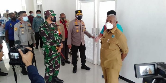 Manokwari Selatan. kodam18kasuari.tni-ad.mil.id – Sebagai bentuk soliditas antara TNI-Polri dengan Pemerintah Provinsi Papua Barat, Pangdam XVIII/Kasuari, Mayjen TNI I Nyoman Cantiasa, S.E., M.Tr.(Han), bersama Gubernur Provinsi Papua Barat, Drs. Dominggus Mandacan dan Kapolda Papua Barat, Irjen Pol Dr. Tornagogo Sihombing S.I.K.,M.Si, secara langsung meninjau Rumah Sakit Pratama Elia Waran yang terletak di Distrik Oransbari serta pelaksanaan Vaksinasi Massal di Ransiki, Manokwari Selatan, Papua Barat, Kamis (22/7/2021).
