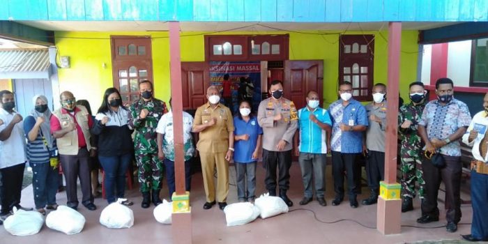 Setelah meninjau kegiatan vaksin, Pangdam, Gubernur dan Kapolda beserta Bupati Manokwari Selatan menyerahkan secara simbolis bahan pokok makanan kepada masyarakat yang sudah divaksin. Pada kesempatan tersebut Pangdam didampingi Danrindam XVIII/Kasuari, Kolonel Inf Choirul Anam, SE, M.M., Asops Kasdam XVIII/Kasuari Kolonel Inf Lucky Avianto, S.I.P., M.Si. dan Pamen ahli bidang OMP Kolonel Arh Syaiful.