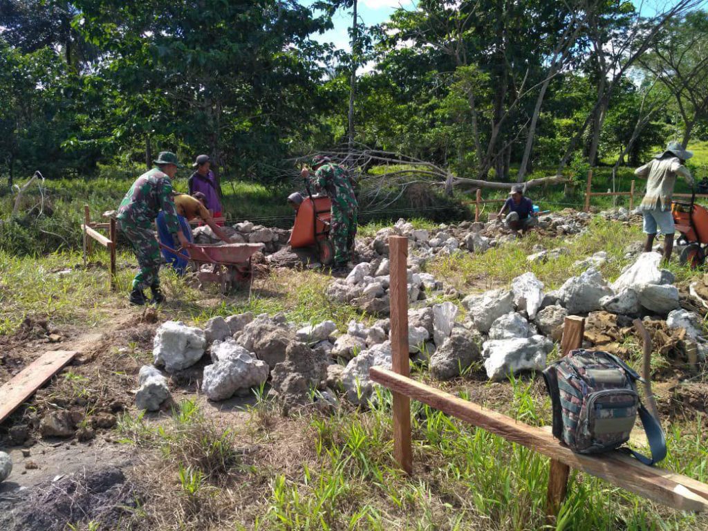 Bentuk Sosial Diwilayah, Anggota Koramil 1802-06/Beraur Bantu Warga Bikin Pondasi Rumah