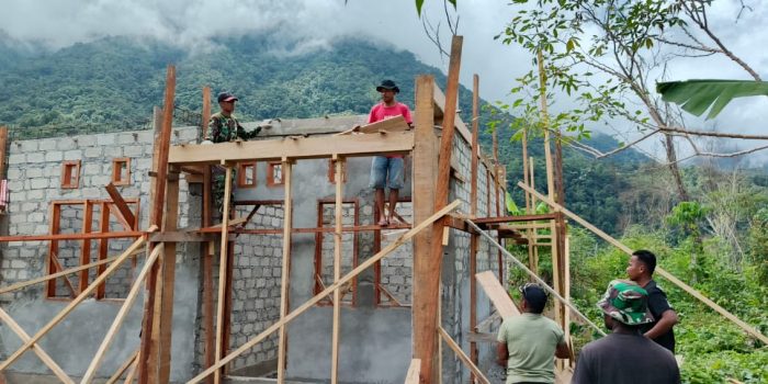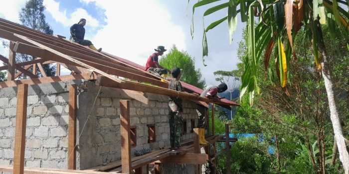Guna mewujudkan impian masyarakat, Satgas TMMD Ke-121 Kodim 1801/Manokwari bersama warga berkomitmen tetap melakukan pekerjaan sasaran fisik pembangunan Rumah di Kampung Kwau Distrik Molwam, Kabupaten Manokwari, Provinsi Papua Barat, Minggu (11/08/2024).
