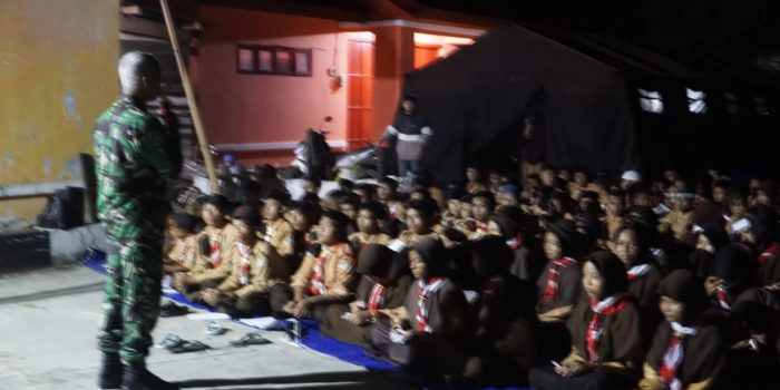 Menyikapi hal tersebut, Pasi Binpuanter Korem 182/Jazira Onim Mayor Arh Budi Agus Santoso memberikan materi wawasan kebangsaam kepada anggota Pramuka SMP Terpadu dalam kegiatan perkemahan Sabtu minggu (Persami), yang dilaksakanan di halaman belakang kantor Basarnas kampung Porum distrik Fakfak Barat Kabupaten Fakfak Papua Barat pada sabtu (18/11/2023).