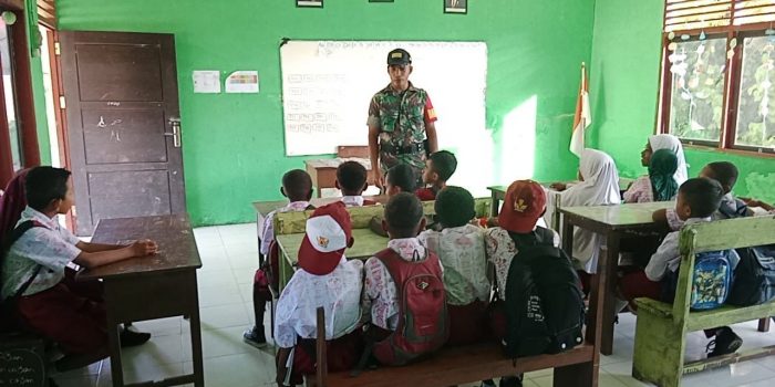 Demikian hal nya yang dilakukan Babinsa Koramil 1804-05/Arguni Bawah, Kodim 1804/Kaimana Serda Rikard melaksanakan kegiatan anjangsana ke salah satu Sekolah SD yang bertempat di Kampung Urisa, Distrik Arguni Bawah, Kabupaten Kaimana, Provinsi Papua Barat, Selasa 04/02/2025).