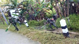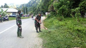 Kaimana – Bersama warga bergotongroyong membersihkan sampah dan pembabatan rumput sekitar Sungai Torabe, Kel Krooy, Distrik Kaimana, Kab. Kaimana, Rabu (21/02/2018).