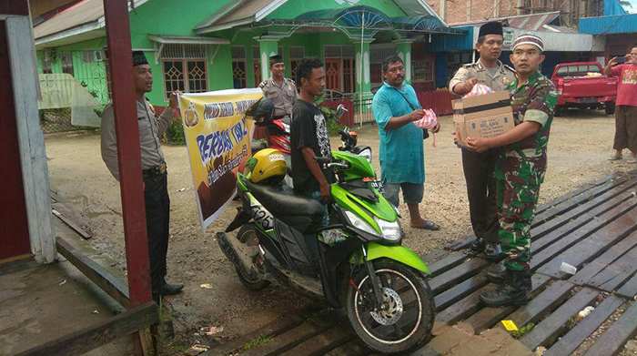 Sorong – Dalam rangka bulan suci Ramadhan, guna meningkatkan amal ibadah dibulan Suci Ramadhan serta wujud kepedulian terhadap warga. Babinsa Koramil Beraur Serka Heru bersama anggota Polsek Beraur bersinergi dalam berbagi berkah dibulan Suci Ramadhan 1439 H Tahun 2018 bertempat di Depan Masjid Al-Ikhlas Jalan Raya Klamono Km. 48 Kabupaten Sorong, Jumat (01/06/18).