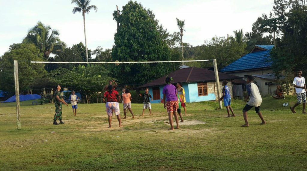 Tidak hanya melakukan pendekatan terhadap perangkat desa atau tokoh-tokoh masyarakat dan tokoh penting lainya saja, tetapi para pemuda juga menjadi sasaran penting binter, dalam rangka menjalin keakraban dengan para pemuda diwilayah binaan. Olahraga volly bersama warga dimulai pukul 07.30 sampai dengan 09.00 Wit melibatkan pemuda Kampung Wecama setempat sekitar 15 orang, terlihat dengan penuh semangat.