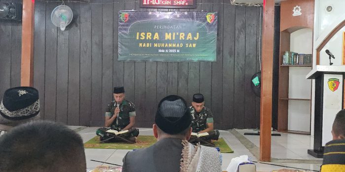 Dalam rangka meningkatkan keimanan dan ketakwaan terhadap Tuhan Yang Maha Esa, keluarga besar Brigif 26/Gurana Piarawaimo & Yonif 763/SBA menggelar Peringatan Isra Mi’raj Nabi Muhammad SAW 1446 Hijriah/2025 Masehi bertempat di Masjid Al-Muhajirin, Teluk Bintuni, Selasa (28/1/2025).