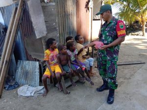 Kaimana, Seperti yang dilakukan oleh salah seorang Babinsa Koramil 1804-03/Tlk Arguni Kodim 1804/Kaimana Serda Maarif bercengkrama bersama anak-anak di kampung binaan, Rabu (19/06/19). Di sela…