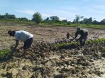 Guna mendukung pemerintah dalam program luas tambah tanam (LTT), Babinsa Koramil 1801-03/Masni Sertu Hirmanto membantu Bapak Damin salah satu petani dalam membuat pematang sawah di…