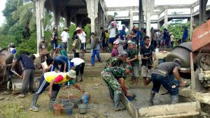 Sorong – Bintara Pembina Desa (Babinsa) Koramil 1704-03/Saonek, Sertu Yubel bersama warga, bergotongroyong membantu pemasangan, pengecoran jalan bertempat di Kampung Wawiyai, Distrik Waigeo Selatan, Kab.…