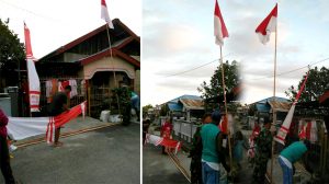 Sorong – Menjelang HUT RI ke-72, anggota TNI dari Koramil 1704-06/Salawati jajaran Kodim 1704/Sorong Serda Sudarto bersama masyarakat Kelurahan Matawolot Kab. Sorong memasang umbul-umbul baik…