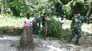 Sorong – Bintara Pembina Desa (Babinsa) Koramil 1704-01/Sorong Timur Serka Suprihatin bersama masyarakat melaksanakan kegiatan karya bakti membuat pondasi rumah salah satu warga di kelurahan…