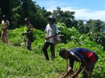 Guna mewujudkan kedekatan antara TNI dengan rakyat, Sertu M.Jatim Babinsa Koramil 1801-06/Sidey ikut serta bersama warga dalam Karya Bhakti memperbaiki drainase di wilayah binaaanya Kampung…