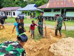 Sorsel – Satgas Pamtas RI-PNG Kewilayahan Papua Barat Daya Yonif 762/VYS Pos Johsiro bersama para warga kerja bakti membangun lapangan upacara di SD Inpres 116/Johsiro…