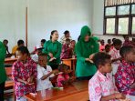 Guna menanamkan pola hidup sehat dan bersih bagi anak-anak sejak usia dini, Satgas TMMD Kodim 1801/Manokwari dan Persit KCK Cabang XII Manokwari menggandeng Puskesmas Distrik…