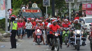 Sorong – Pencanangan bulan Natal dan lomba karnaval Santa Claus tahun 2017 yang ditandai dengan dibunyikannya sirene oleh Wakil Walikota Sorong Hj. Paimah Iskandar, MM.MA.,…