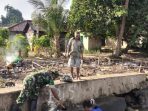 Babinsa Koramil 1802-04/Seget Sertu Rahmansyah bahu membahu bersama warga binaannya memindahkan batu karang yang akan digunakan memperbaiki Talut yang rusak dibelakang rumah milik Bapak Daud…