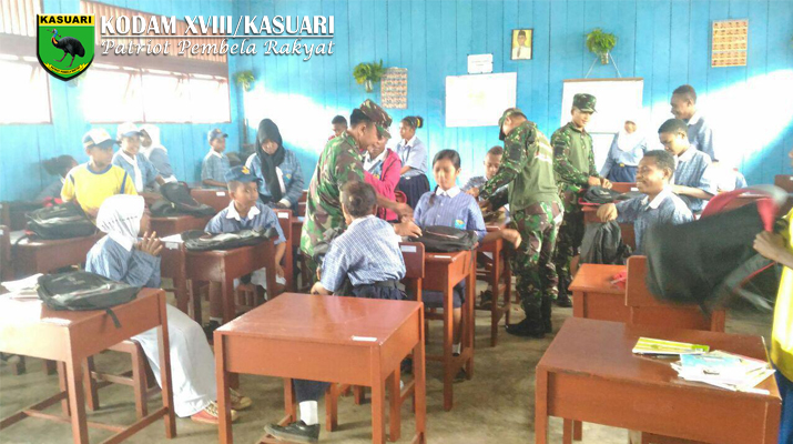 Manokwari – Anggota Koramil 1703-08/Babo Sertu Basrun, Kopda Soleman dan Praka Panser beserta Guru SMP Negeri 01 Babo melaksanakan pemeriksaan senjata tajam, buku, majalah porno dan HP yang menyimpan aplikasi berbau pornografi di Sekolah SMP Negeri 01 Babo Kabupaten Teluk Bintuni, Provinsi Papua Barat, Selasa (07/03/2017).