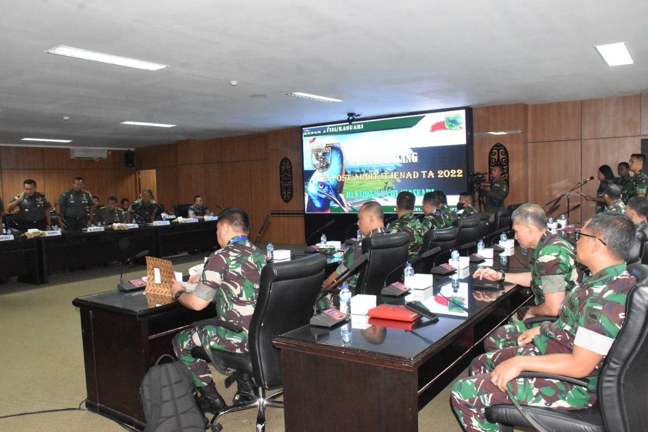 Sementara itu Kasdam, Brigjen TNI Yusuf Ragainaga selaku tuan rumah mengucapkan selamat datang dan selamat melaksanakan tugas Post Audit di Kodam XVIII/Kasuari, saran dan masukan Tim sangat diharapkan dalam memperbaiki kinerja Kodam kedepan.