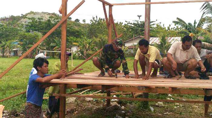 Sorong – Untuk meningkatkan keamanan dan ketertiban dilingkungan warga, Babinsa Koramil 1704-13/Sorong Sertu La Giri bersama masyarakat melaksanakan kegiatan karya bakti pembuatan Pos Keamanan Lingkungan (Pos Kamling), bertempat di Kelurahan Rufei RT 01,02/RW III Kota Sorong, Kamis (21/12/17).