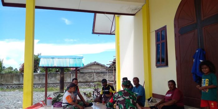 Demi menjaga toleransi dan ketentraman Wilayah Babinsa Koramil 1801-06/Sidey Sertu Hendrigu dan Kopka Sarjo melaksanakan komunikasi Sosial bersama pengurus Gereja GKI Immanuel Kampung Sidey Jaya Distrik Sidey, Kabupaten Manokwari, Provinsi Papua Barat, Senin (21/10/2024)