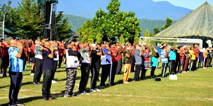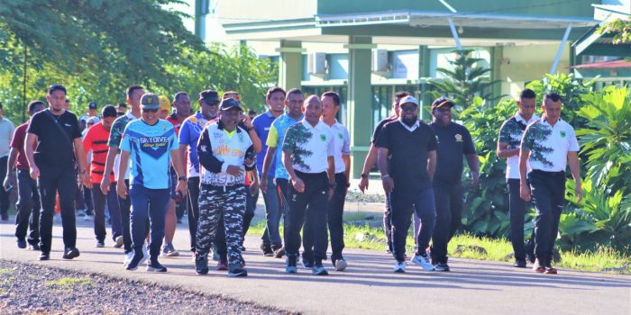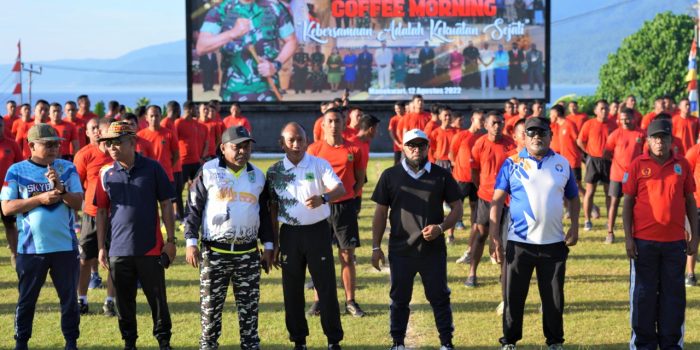 Acara Coffe Morning didahului olahraga pagi dengan jalan santai berkeliling Markas Kodam XVIII/Kasuari, Mayjen TNI Gabriel Lema, S.Sos., berharap pertemuan yang dikemas dalam kegiatan coffe morning ini, dapat memperteguh semangat untuk menyatukan visi dan persepsi dari seluruh komponen masyarakat untuk saling bergandeng tangan dan berkerja sama mewujudkan situasi dan kondisi yang aman dan kondusif.