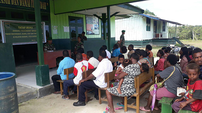Manokwari – Dalam rangka jalin hubungan persaudaran yang harmonis dengan masyarakat, Danramil 1703-03/Merdey Kapten Inf Asri Wuri Hendra Dewa melaksanakan Kegiatan Komsos dengan Komponen Masyarakat di Koramil 1703-03/Merdey Distrik Merdey Kab. Teluk Bintuni Prov. Papua Barat, Senin (11/12/2017).