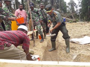Dandim 1706/Fakfak meletakan batu pertama pembangunan rumah singgah sasaran TMMD ke-102 TA.2018.